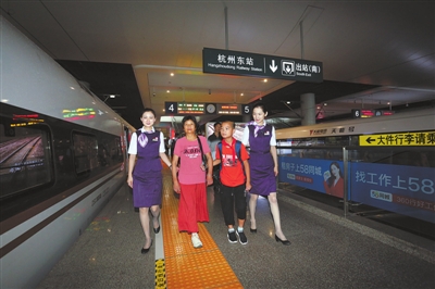 在杭州到北京的列车上,记者抽空采访了小跃豪。在问起他对妈妈的印象时,他一度沉默,眼眶里有泪光闪动,我后悔涉及这话题,但很快,跃豪的脸上绽开了笑容,他一一列举起“西子号”姐姐们对他和同学们的帮助。