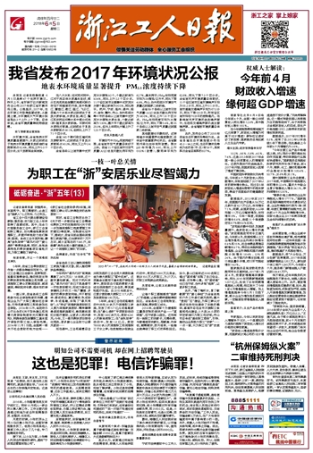 本报讯 记者吴晓静报道 6月5日是第47个世界环境日。昨天上午,省环保厅召开新闻发布会公布2017年浙江省环境状况公报。公报显示,2017年,生态环保工作取得显著成效,从数据上看,水环境和大气环境分别呈现出3个上升、2个下降。总体来说,全省环境质量得到持续改善。