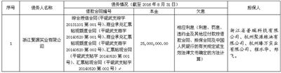 | 单位:人民币元 注:1. 清单中“担保人”包括保证人、抵押人、出质人,担保人的担保范围以签署的合同等法律文件约定为准。如公告中债务人、合同编号、债权金额、担保人等信息与事实不符的,以签署的合同等法律文件约定为准。 2. 本公告清单列示截至2016年8月31日的贷款本金余额,借款人和担保人应支付的利息、罚息、违约金及其它应付款按借款合同、担保合同及中国人民银行的有关规定或生效法律文书确定的方法计算,实际计算与欠息金额不一致,以实际计算为准。 3. 若借款人、担保人因各种原因更名、改制、歇业、吊销营业执照或丧失民事主体资格的,请相关承债主体及/或主管部门代位履行义务或履行清算责任。 |