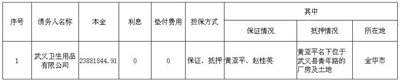 债务人为武义卫生用品有限公司,债权本息为人民币23881844.91元,其中本金23881844.91元,基准日为2018年3月31日。