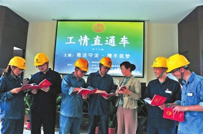 衢州市总工会工作人员表示,为打造“枫桥经验”工会的升级版,市总工会将不定期地开通“工情直通车”进企业、社区等,就员工关心的热点、焦点问题,为企业和员工普及法律知识,努力将劳资矛盾消除在萌芽状态。