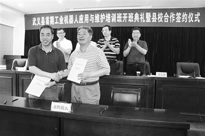 近日,金华市技师学院和武义县政府签订高技能人才培养合作协议。由该院承担的武义县首期工业机器人应用与维护专项能力培训班也同时开班。这是金华市技师学院服务地方经济,为地方经济转型升级培养紧缺高技能人才的又一次实践。