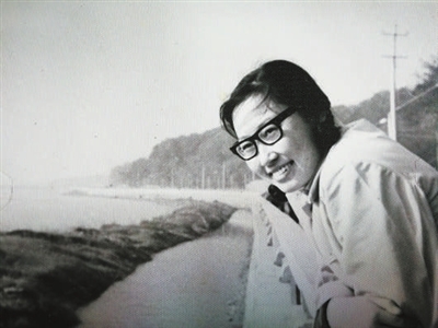 “看,这就是大学时期的我。”傅吉青翻开相册,照片上的女孩面容清秀,笑容甜美,戴着一副粗框眼镜,略显文静羞涩,身后的校园大门上“杭州大学”四个字格外醒目。