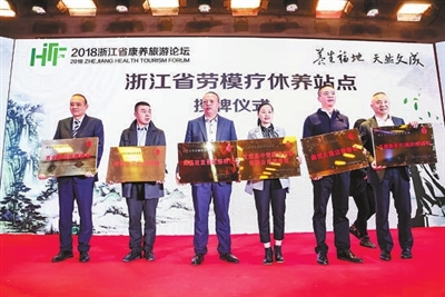 | 在“2018浙江省康养旅游论坛”上,举行了浙江省劳模休养基地及疗休养站点授牌仪式。 |