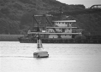 图为大鱼厂门口海域暗礁上安装的临时浮桶式航标。