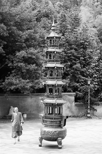 进入山门,几棵参天大树似乎搭起一个禅的世界。每一次的起脚踏阶,都会有一种有层次的冥想。我轻轻地往前走着,感受着这山门里的禅境。