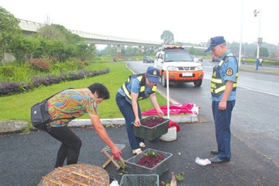 眼下杨梅、桃子、西瓜等水果陆续上市,一些经营户为了贪图方便,在公路两侧随意摆摊设点,影响了公路安全与畅通。
