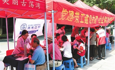 昨天是我省出梅第一天,也是晴热高温天开始的日子。当日,杭州市古荡湾社区举办便民服务周的首场活动,为社区内的企事业单位职工和离退休职工开展高温季节保健、消防安全知识咨询、义务理发等多种贴心服务。翠苑街道总工会还在活动现场设立《工会法》宣传、职工高温劳动保护、无欠薪行动等法律咨询和援助点,与社区携手为职工服务。记者周金友