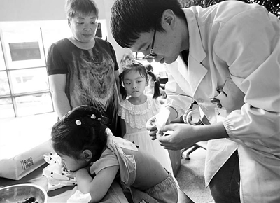 据悉,该院儿科是省内最先开展小儿“冬病夏治穴位贴敷”的科室,经过30多年的探索和经验积累,在中药调配上已具有指导地位,临床疗效显著,不良反应少,患者口口相传,至今已服务了十几万的儿童,每年仍有不少家长带小儿不远千里赶来。图为儿科专家在为小儿贴敷。