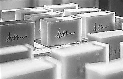 但用冷制法制作手工皂是一件费工时又费精力的事情。搅拌数小时,皂化入模24个小时。手工切割后,手工皂需在严格监控温度、湿度的晒皂间晾晒足足2个月,待皂体的pH值降到弱碱性最温和时,一块留有手工温度和时间印记的手工皂才熟成。