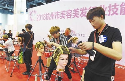 2018年杭州市美容美发职业技能比武,昨天在杭州和平国际会展中心鸣金。60多名优秀选手进行了美容、美发两大类四个项目的技能大比武,充分展示了杭州市美容美发行业广大青年职工爱岗敬业、钻研技能、勇于创新、追求时尚,推进“美丽”产业(行业)加快发展的新理念和新风貌。