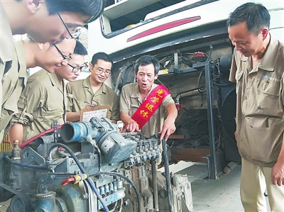 “能把自己这点技术一代代传下去,让更多的年轻人学会并掌握,我就可以放心地离开岗位了。”宁波市公交客车修保厂的孙伟大师傅摸着发动机感慨地说。