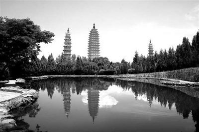 寺庙本为清净佛地,在崇圣寺,虽然也因游客稀少而颇感清静,却感觉不到多少宗教氛围,倒更像是风景旅游景点。崇圣寺纵然修建得再美轮美奂,也是假古董。但崇圣寺中确实有一件千年真文物,这就是闻名遐迩的崇圣三塔。