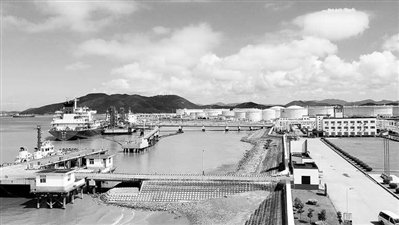 图为浙江自贸区临港石化园区繁忙的岙山石化港口一角。
