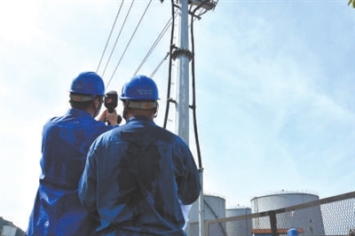 据了解,红外线测温技术对设备的早期故障诊断和预防性维修具有突出优点。工作人员运用红外线测温仪对正在运行的线路、设备进行扫描测温,根据热变化程度,将缺陷隐患扼杀在萌芽阶段,提高供电可靠性。图为舟山供电普陀分中心运检班的工作人员正在对线路进行红外测温。郭巧玲 李彦霖