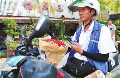 “七夕”来了 外卖小工送花忙