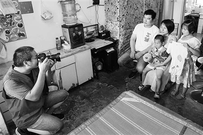 近日,宁波舟山港集团推出公益行动“我为候鸟拍张照”活动,走进暑期爱心学校,免费为外来务工者家庭拍摄全家福。通过摄影师的镜头,把每个家庭成员聚在一起的幸福样子定格。假期结束后,“小候鸟”们将带着与父母短暂相聚的温情瞬间返回家乡,也让父母建设的城市给他们留下美好回忆。图为集团职工摄影协会会员为外来务工家庭拍摄全家福。