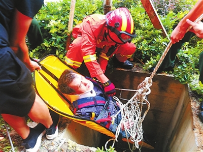 8月19日上午8时35分,台州市公安局椒江分局接到报警,称辖区某工地上一名施工人员不慎坠入一地下室坑洞中,情况紧急,急需救援。消防官兵、派出所民警到达现场后,发现该坑洞入口较窄,足有七八米深,类似深井,底部空间较大。伤者从高处坠落,躺在地上无法动弹,表情痛苦。