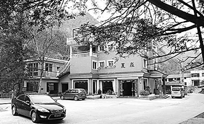 夏庄就坐落在大溪村东南面的千米峡谷内,南北青山对峙,中夹一溪,一幢浅红色的房舍与“夏庄”两个大字,在青山翠竹碧水的映衬下,显得格外醒目。