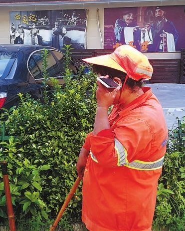 昨天上午,在杭州上塘路朝晖小区附近,一位环卫大姐通过手机微信语音功能(下图),嘱咐远在安徽山区老家的孩子,“马上要开学了,要听爷爷和奶奶的话,上学路上别贪玩,回家作业别忘了带”……满满的都是关爱。