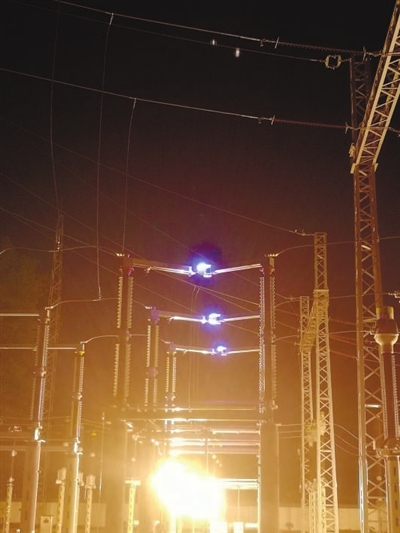 | 图片中的蓝光是所内设备受电冲击后产生的火花。 |