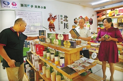 四川省绵阳市北川羌族自治县是衢州市柯城区的对口帮扶县。北川农特产品特产馆在实体销售商品的同时,电商扶贫也是其中重要一环,特产馆通过线上、线下的两地商务协作,正探索出一条可行的、可复制的扶贫新模式。