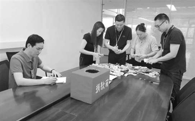 | 工作人员在清点募捐款数额。 |