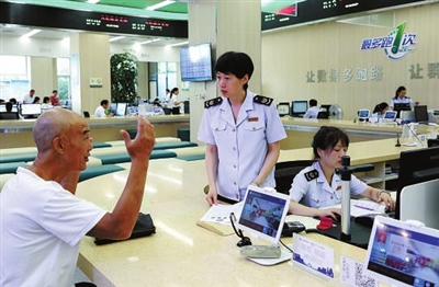 | 在衢州市行政服务中心税务窗口,工作人员向群众介绍办事流程。 见习记者邹伟锋 摄 |