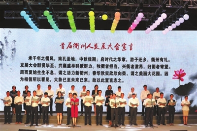 大会尾声,全场嘉宾高声齐诵《首届衢州人发展大会宣言》。