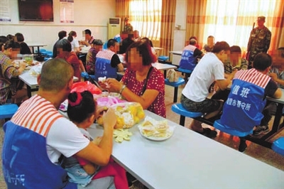 这一幕不是见于家庭和饭店,而是9月24日上午出现在诸暨市看守所的亲情餐厅里。