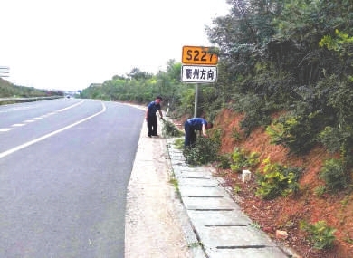近日,柯城公路管理局组织路政人员,对辖区路段遮挡标志的树枝进行修剪、清理,做到干线公路两侧标志醒目,在消除安全隐患的同时提升了道路通行环境,确保过往车辆通行安全。