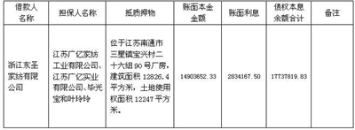 | 贷款债权明细表 基准日:2016年12月8日 金额:人民币元 注:1. 清单中“担保人”包括保证人、抵押人、出质人,担保人的担保范围以签署的合同等法律文件约定为准。如公告中债务人、合同编号、债权金额、担保人等信息与事实不符的,以签署的合同等法律文件约定为准。 2. 本公告清单列示截至2016年12月8日的贷款本金余额,借款人和担保人应支付给浙江浙农锦城资产管理有限公司的利息、罚息、违约金及其它应付款按借款合同、担保合同及中国人民银行的有关规定或生效法律文书确定的方法计算,实际计算与欠息金额不一致,以实际计算为准。已经进入诉讼程序的,并已由浙江瀚展资产管理有限公司垫付的应由借款人及担保人负担的诉讼费、执行费等以有关法律文书确定的金额为准。 3. 若借款人、担保人因各种原因更名、改制、歇业、吊销营业执照或丧失民事主体资格的,请相关承债主体及/或主管部门代位履行义务或履行清算责任。 |