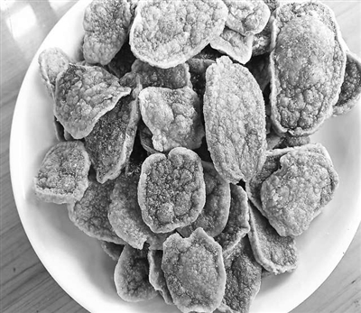 根据母亲的经验,晒洋芋片时还要注意天气情况,如遇阴雨天气,晒出来的洋芋片呈暗褐色,炸出来没有脆性,也没有阳光特有的香味,外观亦难看。当然炸的时候也要掌握火候,火太大了容易炸焦,吃起来有股苦味。