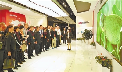 | 劳模们参观海康威视智慧安防体验馆。记者何悦 摄 |