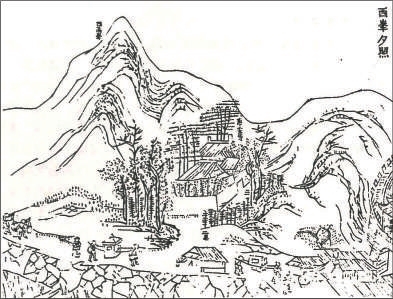 西峰夕照 古代诗人盛赞其为“秀绝人寰第一峰”。西高峰从南面望像日本富士山,由东面望又像古代美女头上的云鬟;山峰上下既没有悬崖峭壁,也没有怪石巉岩;整座山峰铺满了茸茸绿草,像披着轻纱婆娑起舞的少女……山峰下的浓荫深处,原露出了红墙绿瓦,这就是昭庆寺,本地人称作西峰寺。原是唐宋古刹,内设有大殿官殿和三面回廊,并有壁月池、听泉亭与之映衬,为西峰增色不少。每当夕阳西下,西高峰腰衔一轮“金盘”,清秀的山峰一片金色,光彩夺目。