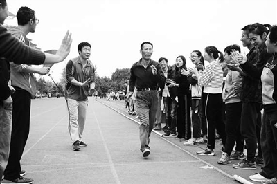 在日前结束的宁波镇海职教中心校运会上,一段教职工参加800米跑步比赛的视频火了。该校59岁负责保洁的临时工潘国顺师傅带伤坚持完成报名的运动赛项,赢得了全校师生的起立、鼓掌和致敬。这段视频传到抖音上,已有200多万名网友观看,一天内获得网络点赞20.5万。网友纷纷留言,“青春常在,永不言败。加油!潘师傅!”镇海职教中心有学生表示,“以后坚决不给潘师傅添负担,而且我们还有什么理由不运动呢。”该校党总支书记徐雪群感叹道:现场的老师、同学无不为潘师傅鼓掌加油,场面温暖而励志!