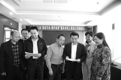 年终将至,农民工工资能否按时发放?近日,衢州市总工会“工情直通车”开进常山县,以“尊法守法·携手筑梦”为主题,探讨交流普法工作和为农民工讨薪的经验。