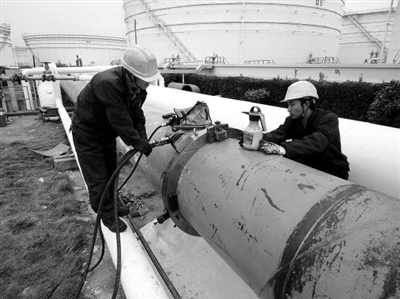 近日,浙江舟山中化岙山石油储运基地罐区系统正在升级改造中,该基地的一线员工陈开栋、江淮安、陈波、张杰、胡碧海立足岗位产生的三项发明技术专利被应用到企业技术改造中,受到员工们的交口称赞。图为施工人员正在对大罐油污水切换装置管线进行基于技术专利的技术改造。