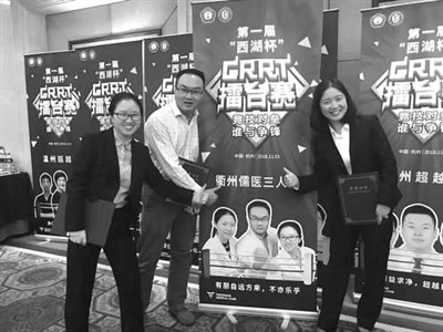 近日,第四届西湖国际重症血液净化大会在杭州召开。衢州市人民医院重症医学科罗建副主任医师、王丹琼主治医师和卢俊梅副主任护师组成“衢州儒医三人”组合,代表衢州市参加了第一届“西湖杯”CRRT擂台赛,喜获二等奖。