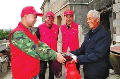 图为党员志愿者、党代表在松门镇南塘一村走访慰问老党员。
