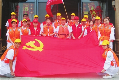 | 图为 “海上飞虎队”的党员志愿者们在温岭民间海上救助站前与党旗合影。 |