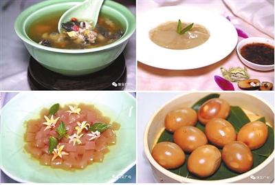 到磐安,可以品尝到味道鲜美、对身体大有裨益的磐安药膳:杜仲煨猪腰、玉竹老鸭煲、石斛银耳羹、黄精焖肘子、太子石蛙汤、羊蹄甲鱼冻、清凉择子冻、元胡土鸡蛋、姜枣养生粥、茯苓猪肚汤、覆盆子泥鳅等。