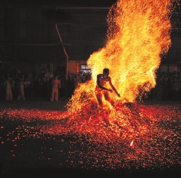 温泉的泳池像一块蓝田玉在阳光下闪着温润的光泽,原汤温泉区的沉鱼泉、落雁泉、闭月泉、羞花泉、醉仙汤、观心泉、花漫泉、环翠泉、柳荫泉、幽梦泉、茗香泉等五十多座汤池,隐秘在暗红的、沉默着的火山岩间,各有情调和文化意味,恍若一幅回到古代山林的画面。