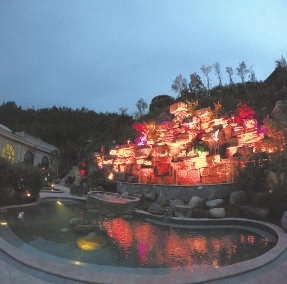 大盘山温泉山庄紧邻“江南药镇”,把中药与温泉结合起来自然是温泉养生的一大特色。在几株月桂树下,行气元胡泉、滋阴玄参泉、益气白术泉、清热贝母泉和镇痛芍药泉五个汤药池,这些汤药池并非凭空而来,都是根据《开宝草本》《本草》《医学启源》《神农本草经》等医书记载,使道地药材“磐五味”的特长得到了淋漓尽致地发挥。