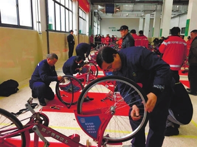 日前,杭州公共自行车技术比武在杭州公共自行车公司修理分公司九和路维修基地内举行。来自杭州公共自行车公司城东、城南、城西、城北、沿江的5个维修班组,以及萧山、余杭、富阳、千岛湖公共自行车的4支维修团队,共9支参赛队伍进行了比拼。比武活动分为补前轮内胎、换后轮内胎,拆装前叉(含五件)以及自行车曲柄牙盘更换、安装新链条三个项目。