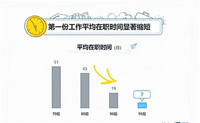 | 七O后、八O后是职场“定海神针”,而九五后职场人平均干七个月就辞职。 |