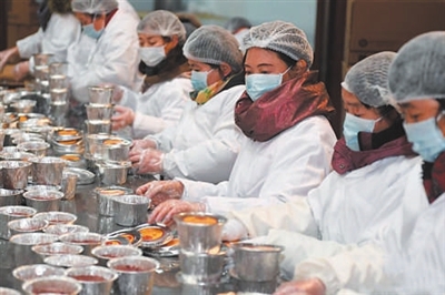 1月6日,杭州灵隐寺义工在分装腊八粥。