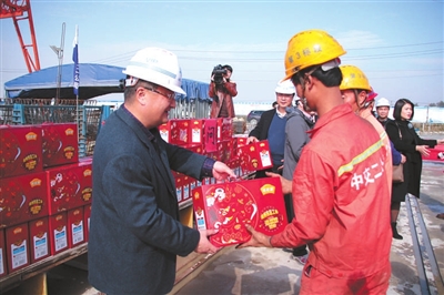 ▲2018.1.16——温州市人大常委会副主任、市总工会主席张洪国一行莅临甬台温复线灵昆至阁巷段项目慰问一线员工(图①)。