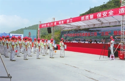 ▲2017.4.1——甬台温复线灵昆至阁巷段、瑞安至苍南段工程“两美”浙江立功竞赛誓师大会暨关爱基金启动仪式隆重举行。