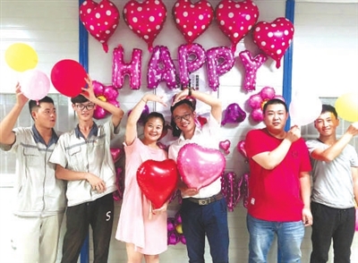 初夏清晨,天微微亮,市域铁路S1线工程土建七工区台州项目部经理钱其龙和项目部工作人员已经在项目部会议室忙碌起来了。“红喜字6对,气球88个,字母2组……”钱其龙一边数着准备好的东西,一边招呼食堂员工准备摆放水果。当天是钱其龙精挑细选的好日子,七工区的张殊伟要在市域铁路S1线迎来自己的新娘子。张殊伟来自河北承德,他与爱人青梅竹马,相恋多年原本计划2018年初在老家举行婚礼。但2018年正是市域铁路S1线“大干快上”的攻坚之年,原本定好的婚礼也因为工程建设一拖再拖。眼看着张殊伟爱人只身一人来到工地陪伴男友,钱其龙暗暗在心里筹划了起来。“不能这么等下去了,我们就让工程建设和人生大事都两全其美”。他暗地里托人打听了良辰吉日,带领项目部工作人员悄悄地布置了婚礼现场,给张殊伟夫妇送上了一份惊喜。“祝你们白头偕老,永浴爱河!干杯!”这天夜里,七工区的工地食堂里,工友们共同举杯,用最朴实的笑容送上了自己的祝福。看着工友们熟悉的面孔,张殊伟爱人激动地哭了。张殊伟用手抹去爱人的眼泪,哽咽着连声道谢:“没想到项目部给我们这么大的惊喜,感谢领导对我们的关心,谢谢大家!”